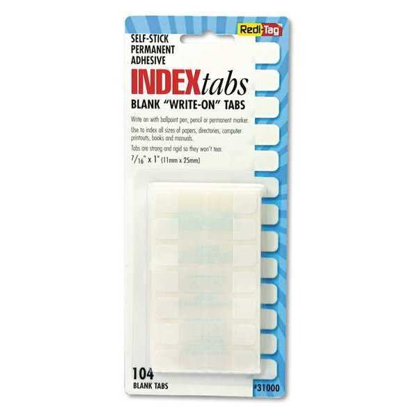 Index Tabs,Write-On,1 In.,White,PK104, Package Quantity 104