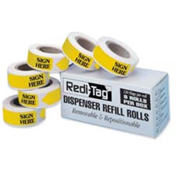 Sign Here refill flags fit into a Redi-Tag removable flag dispenser. Use where needed and remove the flag when the task is finished or the reference is no longer needed. Write on flags if desired.