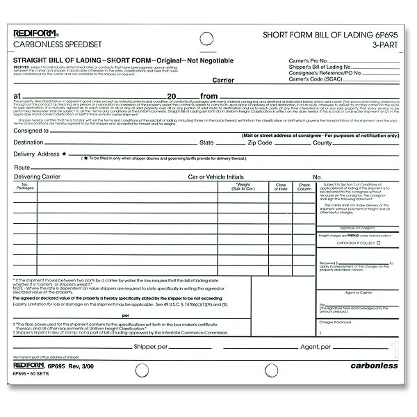 Bill of Lading Form, 3-Part, PK50