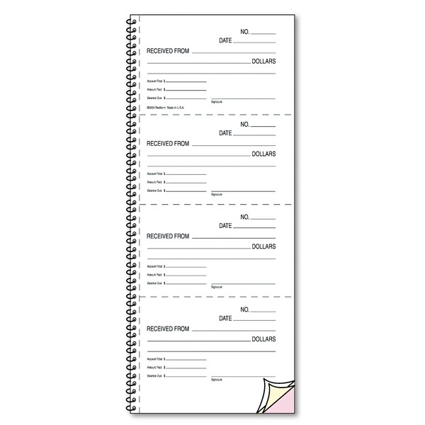 Rediform® Money and Rent Unnumbered Receipt Book, 5 1/2 x 2 3/4, Three-Part, 120 Sets/Book