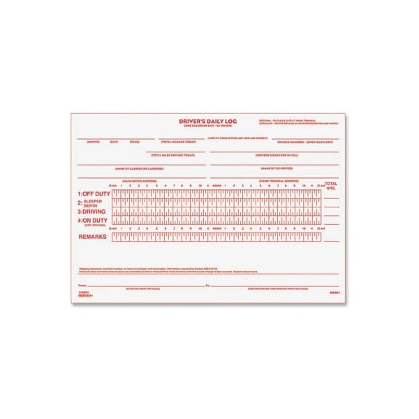 Rediform driver's daily log book, 2-part, 5-1/2" x 7-7/8", 31 sets/pad daily log book for drivers includes 31 two-part sets with carbons. Record time for driving, sleeping, off-duty and on-duty (nondriving). Log book includes a monthly summary and vehicle inspection form. Manifold book has a flexible cover. larger quantity quotes available. Please call 1-888-978-7759. this product arrives to most customers in 2-3 business days.