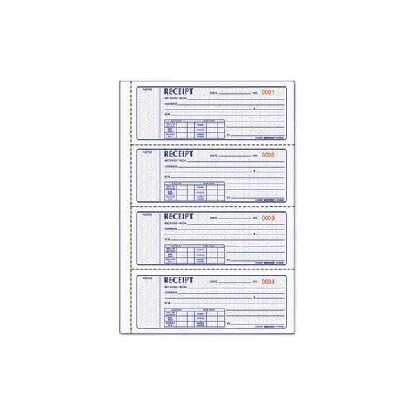 Blue printing with security screen protects against alteration. Handy summary box. Protective cover. FormGuard CoverTrifold wraparound cover protects forms. Form Type Details: Invoice/Receipt; Dated/Undated: Undated; Forms Per Page: 4; Forms Per Page Layout: Vertical: Four Down.