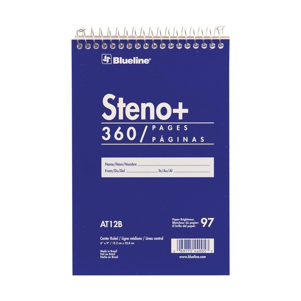 Steno Pad, 360 Page, Top Bound, 6inWx9inLx3/4inH, Blue