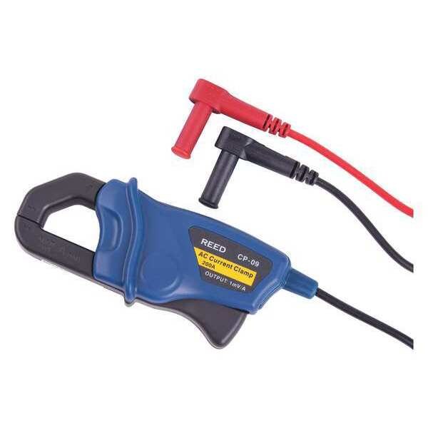 This AC current adapter can be attached to a multimeter and measures up to 200A. The CP-09 features integrated banana plugs and a 3' cable. Product Features; Converts multimeter into AC clamp meter; 2% basic accuracy; Integrated banana plugs; CE certified; CAT. II 600V safety rating.