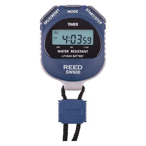 Stopwatch,Digital,48 In.,Nylon Lanyard, Accuracy +/-3 Seconds Per Day, Features Displays Hours, Minutes and Seconds, Programable Daily Alarm, Records Real Time and Split Times, Count Direction Count Up, Digital Display Screen Type LCD, Maximum Time Capacity 23 hrs, 59 minutes, 59 seconds, Alarm Type Audible, Resistance Properties Water Resistant, Calibration Certificate Type Not Certified, Maximum Temperature Measured 140 Degrees F, Minimum Temperature Measured 14 Degrees F, Lanyard Length 48 in