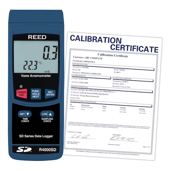 REED R4000SD Data Logging Vane Thermo-Anemometer, includes ISO Certificate