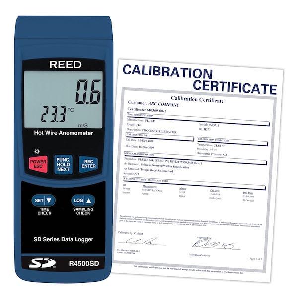 REED R4500SD Data Logging Hot Wire Thermo-Anemometer, includes ISO Certificate