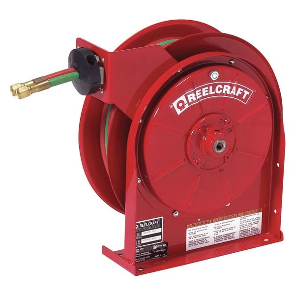 Welding Hose Reel, Welding, Hose Grade R, 200 psi, 0 psi, Hose Capacity 25 ft (1/4 in ID), Combination Type Oxygen/Acetylene, Drive Type Spring Return, For Dual Hose Yes, Hose Reel Type Vehicle, Wall Mount Hose Reel, Hose Return Speed Control No, Includes Hose Yes, Hose 1 Color Red, Hose 1 Cover Material Rubber, Hose 1 Fitting A Gender Female, Hose 1 Fitting A Material Brass, Hose 1 Fitting A Size 9/16 in, Hose 1 Fitting A Type UNF, Hose 1 Fitting B Gender Female, Hose 1 Fitting B Material Brass