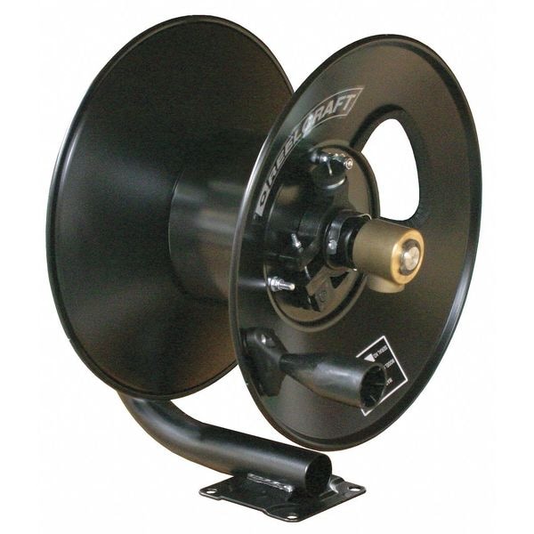 Hand Crank Hose Reel, Air, Garden, Pre-Rinse, Washdown, Water, Hose Capacity 100 ft (3/8 in I.D.), 5,000 psi, Overall Height 15 5/8 in, Overall Length 13 1/4 in, Overall Width 19 1/2 in, Reel Material Steel, Reel Finish Powder Coated, Drive Type Hand Crank, Enclosed No, Includes Hose No, Mounting Location Bench, Floor, Truck, Wall, Reel Color Black, Includes Gooseneck No, Hose Reel Type Free Standing Hose Reel, Vehicle Mount Hose Reel, Wall Mount Hose Reel, Swivel Material Brass