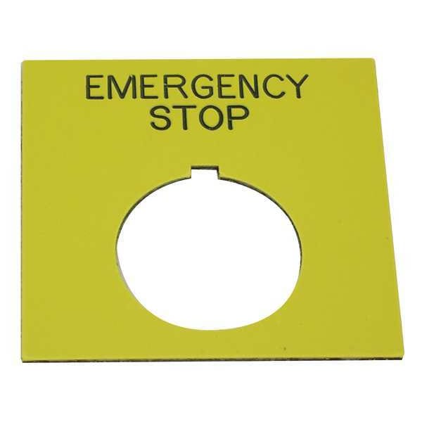 Legend Plate, Square, Legend Emergency Stop, For Use With Rees Switches, Legend/Background Color Yellow, Material Plastic, Height 2.4 in, Width 2.44 in