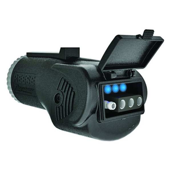 Trailer Adapter, Product Type Trailer Adapter, For Use With Towing Vehicle, Trailer Connection 4-Way Flat, Vehicle Connection 7-Way Blade, Material Plastic, Color Black, Height 1 in, Overall Width 1 in, Overall Length 2 in, Standards SAE J1128, SAE J1239, SAE J560, SAE J928, Features Compatible with Plastic or Metal Connectors, Designed for 12V Systems, Highly Visible, Red LED Circuit Tester Lights for Instant Confirmation that the Wire Circuit is Active and Properly Wired