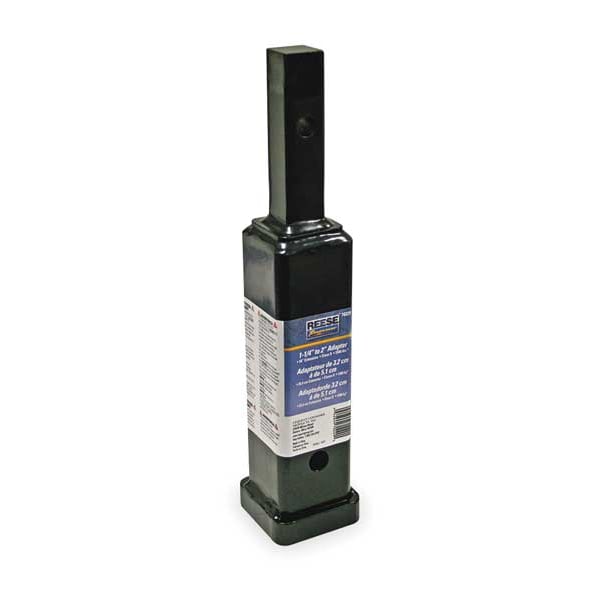 Receiver Adapter, Product Type Receiver Adapter, For Use With 1 1/4 in Receivers, Bike Racks and Cargo Carriers, Trailer Hitch Adapters, Gross Vehicle Weight Capacity 3,500 lb, Overall Length 10 in, Overall Width 2 in, Thickness 2 in, Height 2 in, Features Adapts 1 1/4 in Receiver to 2 in Opening, Black Powder Coat Finish, Reduces Towing Capacity 50 Percent, Requires Both 1/2 in and 5/8 in Hitch Pins, Includes 2 in Square Stress Ring