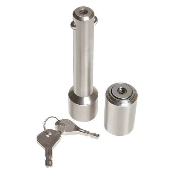 Receiver Lock, Lock Type Universal, For Use With Professional Towing Receiver, Hole Diameter 5/8 in, Vehicle Class III, IV, Features Ball Bearing Lock System Prevents Theft Even if Lock is Broken, Square Key Design Virtually Eliminates Lock Picking, Includes (2) Keys, Finish Chrome
