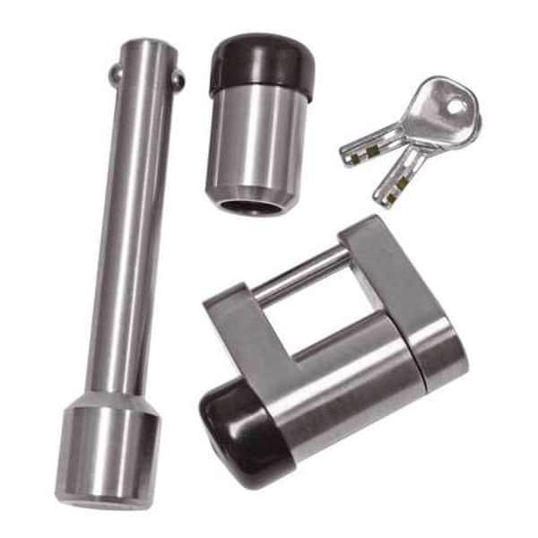 Receiver and Coupler Lock Set, Lock Type Universal, For Use With 2 in Receivers, Hole Diameter 5/8 in, Vehicle Class III, IV, Features Ball Bearing Lock System Prevents Theft Even if Lock is Broken, Square Key Design Virtually Eliminates Lock Picking, Includes (2) Keys, Finish Chrome