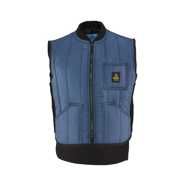 The Cooler Wear Vest has 7.5oz mid-loft insulation, a water-repellent, rip-stop nylon outershell and bound seams to seal out drafts and extend durability. It has an insulated knit collar, thermal stretch knit side gussets for a snug fit, insulated hand warmer pockets and knit collar, with an extra long back for warmth. It is available in navy in sizes S-5XL.