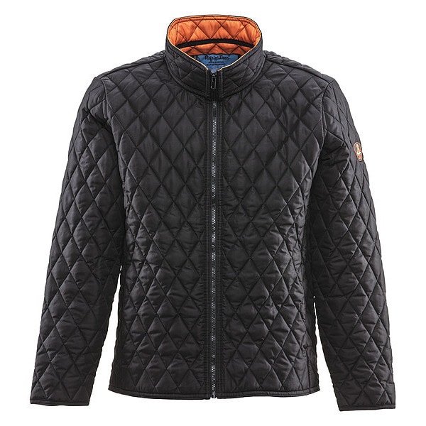 Insulated Jacket, Garment Type Jacket, Length Type Waist, Gender Unisex, Style Jacket, Insulated for Cold Conditions Yes, Material Polyester, Fabric Weight 6.3 oz, Front Closure Type Zipper, Includes Hood No, Hood Style None, Collar Style Manderin, Includes Lining Yes, Number of Outside Pockets 2, Number of Inside Pockets 2, Color Black, Length 25 in, Maximum Chest Size 36 in, Size-Body Type Regular, Temperature Rating Down to 30 Degrees F, Lining Material Polyester, Size S