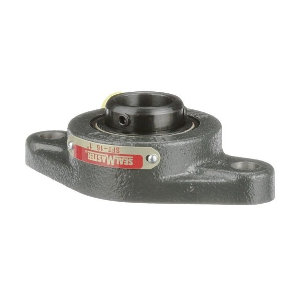 Flange Block Bearing; 2 Bolt Flange Block; 1 in. Bore; 3.9 in. Bolt Circle Diameter; 3-57/64 in. Bolt Spacing; 1 Piece Solid; Set Screw; Cast Iron; Ball Bearing; Relubricatable; Felt Labyrinth Seal