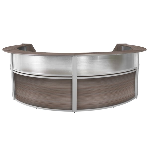 103 in D X 45.5 in H, 142 in W X Wood, Plexi, Driftwood Grey