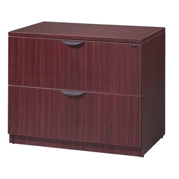 Lateral File Cabinet, Color Mahogany, Finish Laminate, Fire Resistance Rating Not Applicable, Form Factor Legal, Letter, Locking Included, Material Melamine, Number of Drawers 2, Overall Depth 24 in, Overall Height 29 in, Overall Width 36 in, Product Type Lateral File Cabinet, Standards ANSI/BIFMA, Assembly Assembled, Lockable Drawer Location All, Includes Assembly Tools Not Applicable, Configuration (2) Drawers, Includes Full Suspension Slides, Includes Label Holders No, Pull Shape Handle