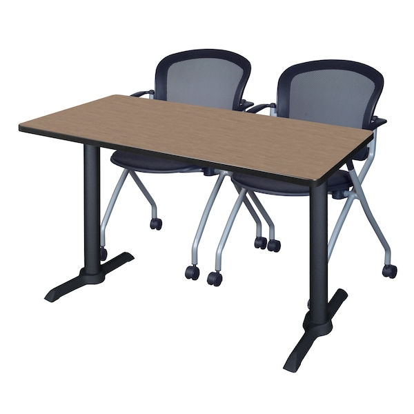 Cain T-Base Training Seminar Table W/ 2 Cadence Stack Chairs, 48 in W, 24 in L, Noble Oak