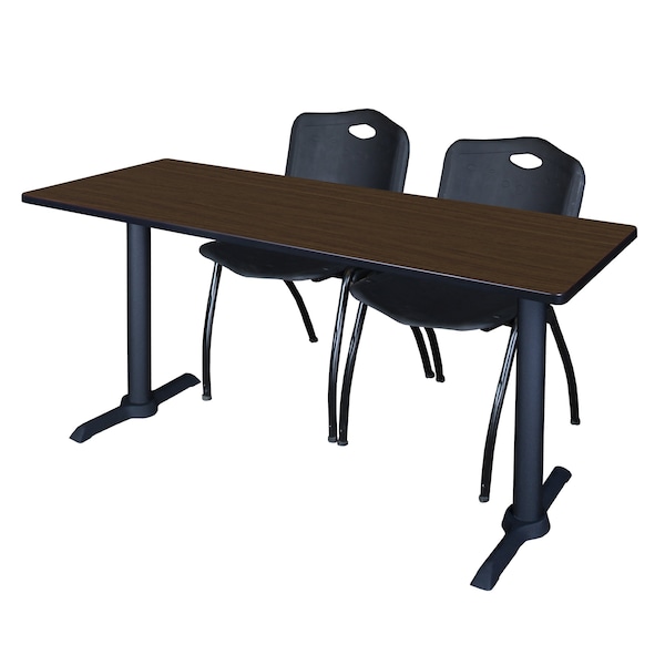 Cain T-Base Training Seminar Table W/ 2 M Stack Chairs, 72 in W, 24 in L, Neo Walnut