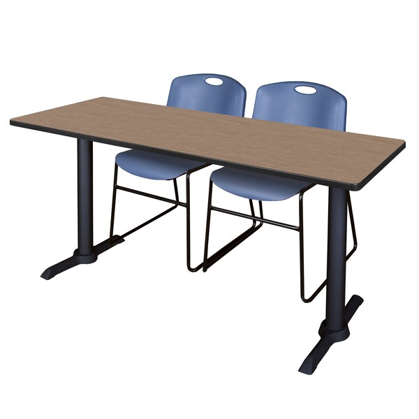 Cain T-Base Training Seminar Table W/ 2 Zeng Stack Chairs, 60 in W, 24 in L, Noble Oak