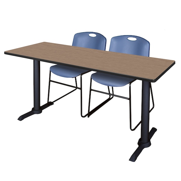 Cain T-Base Training Seminar Table W/ 2 Zeng Stack Chairs, 72 in W, 24 in L, Noble Oak