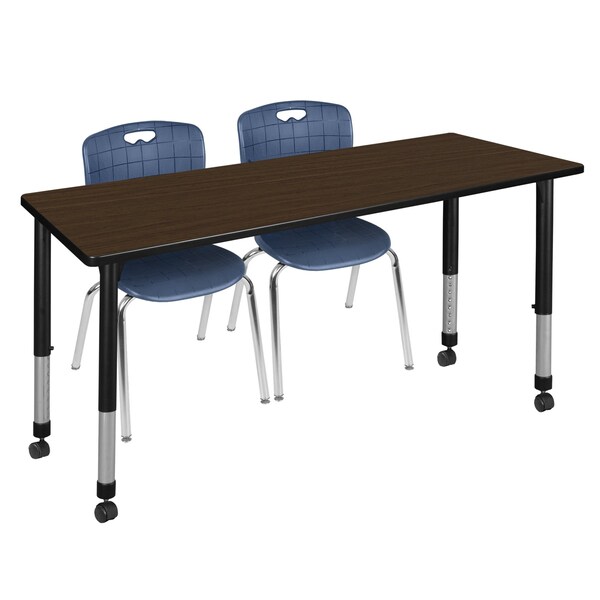 Kee Mobile Adjustable Classroom Table W/ 2 Andy Stack Chairs, 72 in W, 30 in L, Neo Walnut
