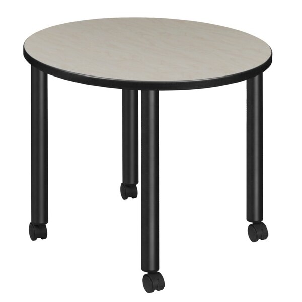 Give everyone more room with Kee tables. Kee Mobile post legs come four to a set and include locking casters, which makes moving the whole table easy. This 30-inch Round table assembles in a snap with just a few screws. The table is constructed of a thermal fused melamine laminate tabletop that is 1-inch thick and finished with a black T-Mold edge band. This Maple tabletop is double-sided and finished in Cherry on the other side. Simply pick the side you like and install the base on the other. Self tapping wood screws and a placement template are included. Laminates are scratch, stain and scald resistant and wipe clean easily. A sleek alternative to pedestal style bases, this set of post legs comes in a classic black to match any decor. The legs are constructed of tubular steel with locking hard plastic casters on the bottom of each leg. Kee tables are backed by a 10-year limited manufacturer's warranty.