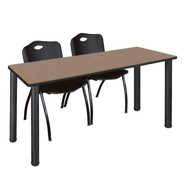 Kee Training Table W/ 2 M Stack Chairs, 72 in W, 24 in L, Noble Oak