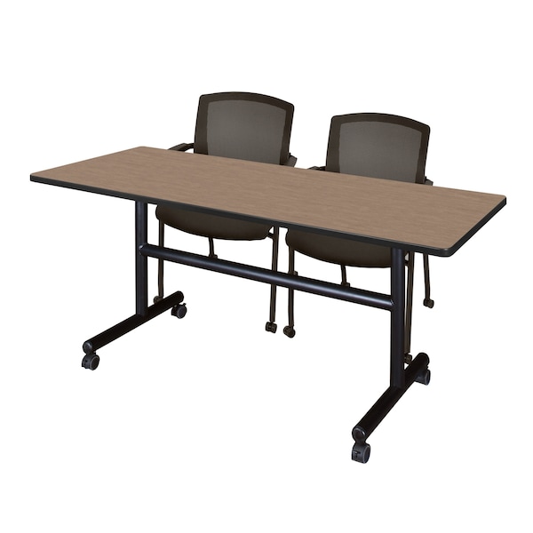 Kobe Flip-Top Training Nesting Table W/ 2 Knight Mesh Chairs, 60 in W, 24 in L, Noble Oak