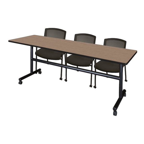Kobe Flip-Top Training Nesting Table W/ 2 Knight Mesh Chairs, 84 in W, 24 in L, Noble Oak