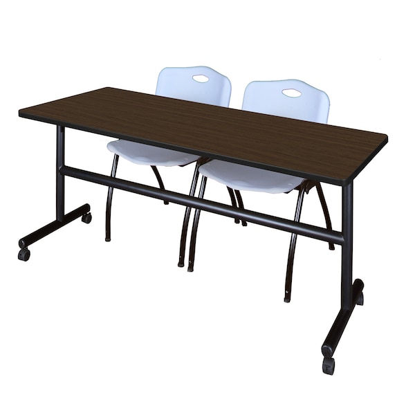 Kobe Flip-Top Training Nesting Table W/ 2 M Stack Chairs, 72 in W, 30 in L, Neo Walnut