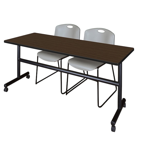 Kobe Flip-Top Training Nesting Table W/ 2 Zeng Stack Chairs, 72 in W, 24 in L, Neo Walnut