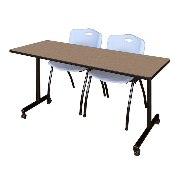 Kobe Mobile T-Base Training Table W/ 2 M Stack Chairs, 72 in W, 24 in L, Noble Oak