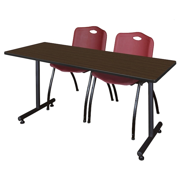 Kobe T-Base Training Seminar Table W/ 2 M Stack Chairs, 60 in W, 24 in L, Neo Walnut