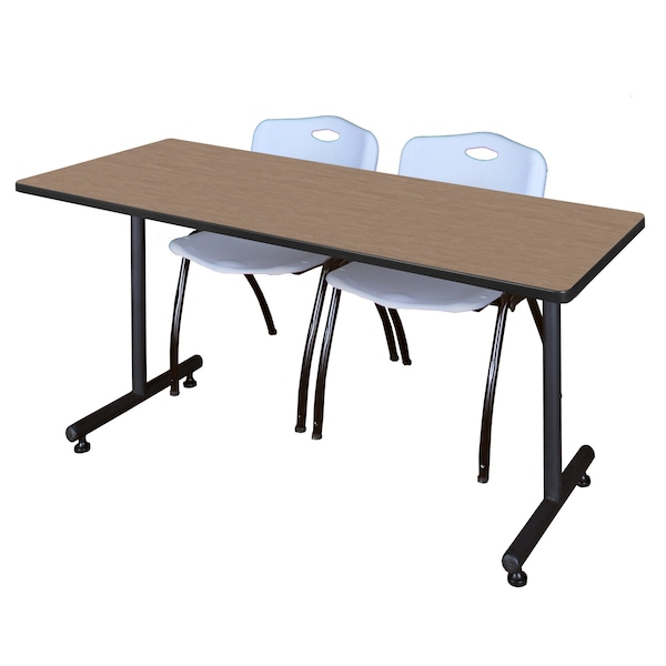Kobe T-Base Training Seminar Table W/ 2 M Stack Chairs, 60 in W, 30 in L, Noble Oak