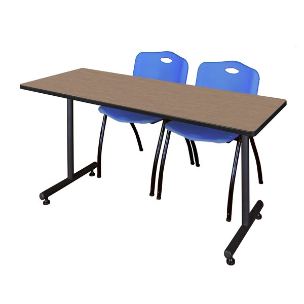 Kobe T-Base Training Seminar Table W/ 2 M Stack Chairs, 66 in W, 24 in L, Noble Oak