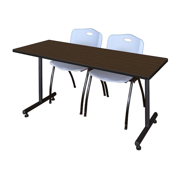 Kobe T-Base Training Seminar Table W/ 2 M Stack Chairs, 72 in W, 24 in L, Neo Walnut