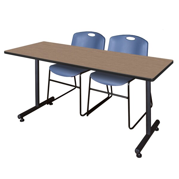 Kobe T-Base Training Seminar Table W/ 2 Zeng Stack Chairs, 60 in W, 24 in L, Noble Oak