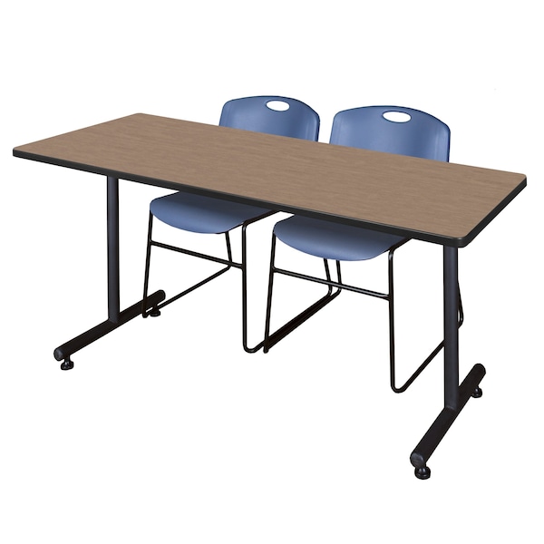 Kobe T-Base Training Seminar Table W/ 2 Zeng Stack Chairs, 60 in W, 30 in L, Noble Oak