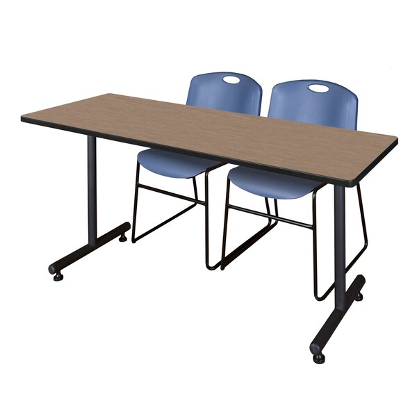 Kobe T-Base Training Seminar Table W/ 2 Zeng Stack Chairs, 66 in W, 24 in L, Noble Oak