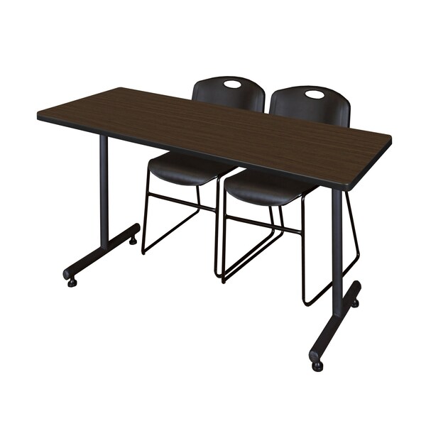 Kobe T-Base Training Seminar Table W/ 2 Zeng Stack Chairs, 66 in W, 30 in L, Neo Walnut
