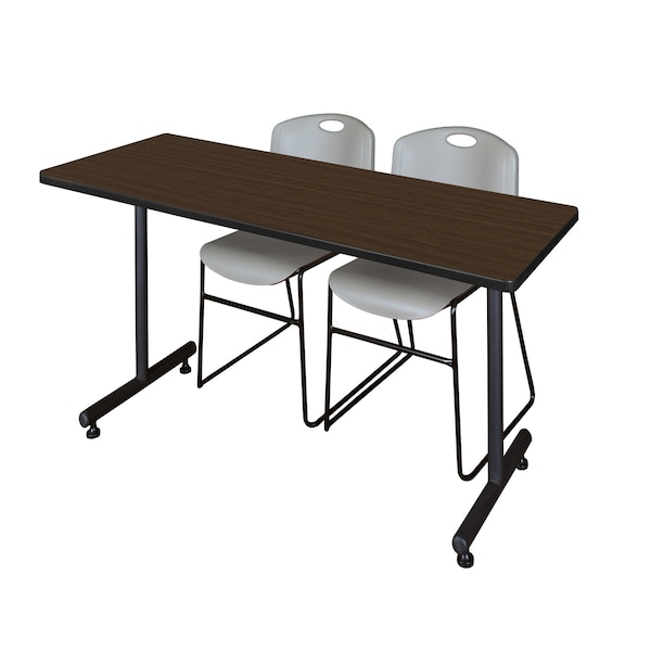 Kobe T-Base Training Seminar Table W/ 2 Zeng Stack Chairs, 66 in W, 30 in L, Neo Walnut