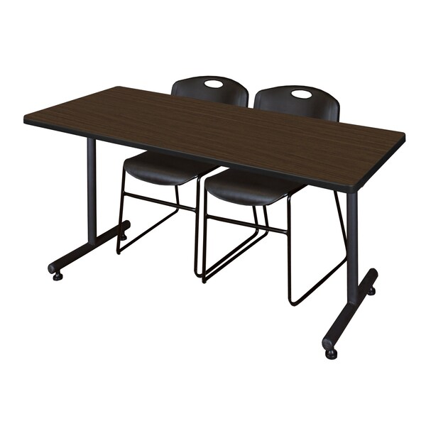 Kobe T-Base Training Seminar Table W/ 2 Zeng Stack Chairs, 72 in W, 30 in L, Neo Walnut