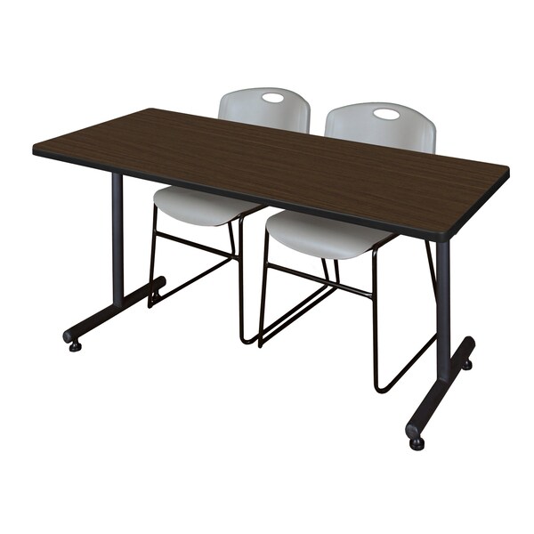 Kobe T-Base Training Seminar Table W/ 2 Zeng Stack Chairs, 72 in W, 30 in L, Neo Walnut