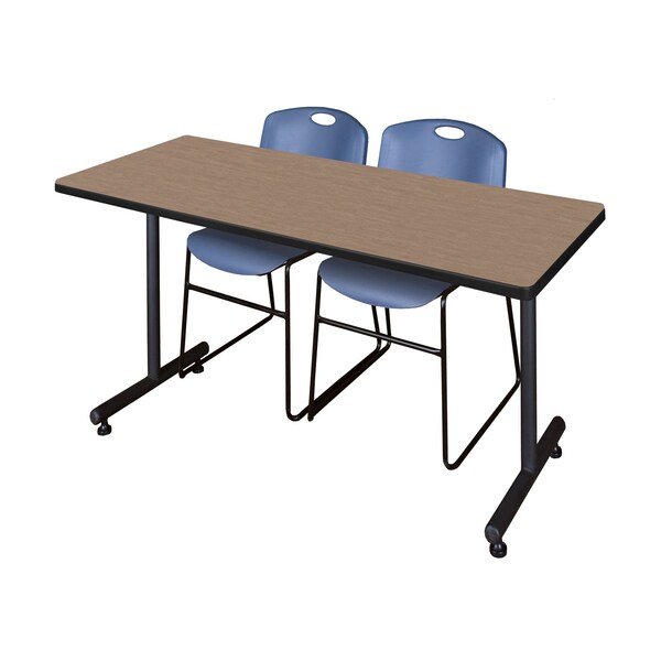 Kobe T-Base Training Seminar Table W/ 2 Zeng Stack Chairs, 72 in W, 30 in L, Noble Oak