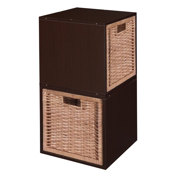 Let your creativity run wild with Cubo! This innovative set of 2 storage cubes by Niche are designed to fasten together in any direction! Connect them in any way you like. In a row, in a pyramid, in a U or L shape or countless other configurations. Start small and add on later. Cubes connect to one another with spring pins, making it easy to customize and create a storage system just for you with a single cube to a set of 12 or more. Niche storage cubes are actually cubes! The Wicker Storage Bins measures 12 x 12 x 12, which integrate seamlessly into Niche Cubo storage cubes (interior dimensions 12 1/8" x 12 1/8" x 12 1/8"). There's no "right" way to use them because all sides measure the same! Who ever said all cubes had to face the front like a bookcase? Cubo storage cubes can attach together in any direction, which opens up a myriad of new design possibilities. Turn one to the right, turn another to the left. Keep one facing front and still another facing the back. Perfect to clean up clutter in closets, entryways, laundry & storage rooms, as a bookcase, nightstand or media storage, in a classroom or children's room-these cubes fit anywhere! Its rich Truffle finish shows subtle wood grain and is sure to please and coordinates with the rest of the Niche line. No tools LockDowel assembly allows pieces to simply snap together and lock into place for a sturdy, hassle-free build in less than 2 minutes. No more searching for the right size screwdriver or dropping tiny screws. Just snap into place and go. Less hardware and fewer small parts means less plastic packaging and less waste. Add, arrange or move around the Foldable Wicker Baskets for a fresh, new custom look whenever you like!