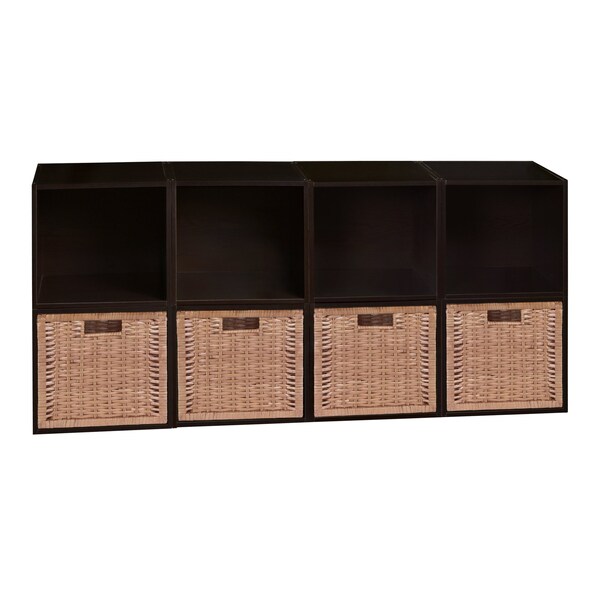 Niche Cubo Storage Organizer Open Bookshelf Set- 8 Cubes 4 Wicker Baskets- Truffle/Natural (Discontinued)