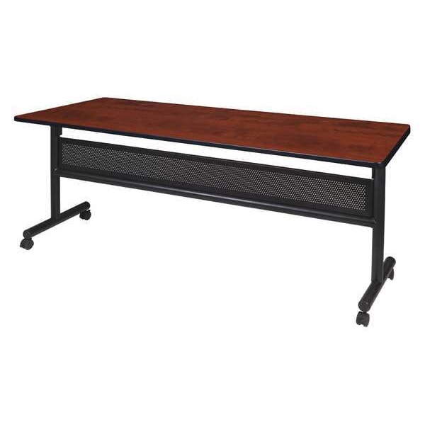 Seminar/Training Table, Surface Material Laminated Melamine, Rectangle, Width 72 in, Height 29 in, Tabletop Color Family Woodgrain, Tabletop Color Cherry, Frame Color Black, Assembled/Unassembled Unassembled, Frame Material Steel, Edge Color Black, Edge Type T-Molded, Leg Type Comfort Leg, Top Thickness 1 in, Series Kobe, Load Rating 175 lb, Standards ANSI, BIFMA, Includes (4) Casters, Perforated Steel Modesty Panel